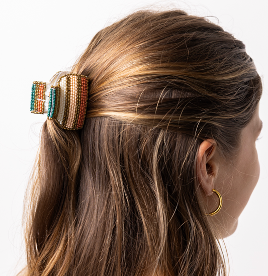 Lola Stripes Beaded Hair Claw Clip Jewel Tone Wholesale