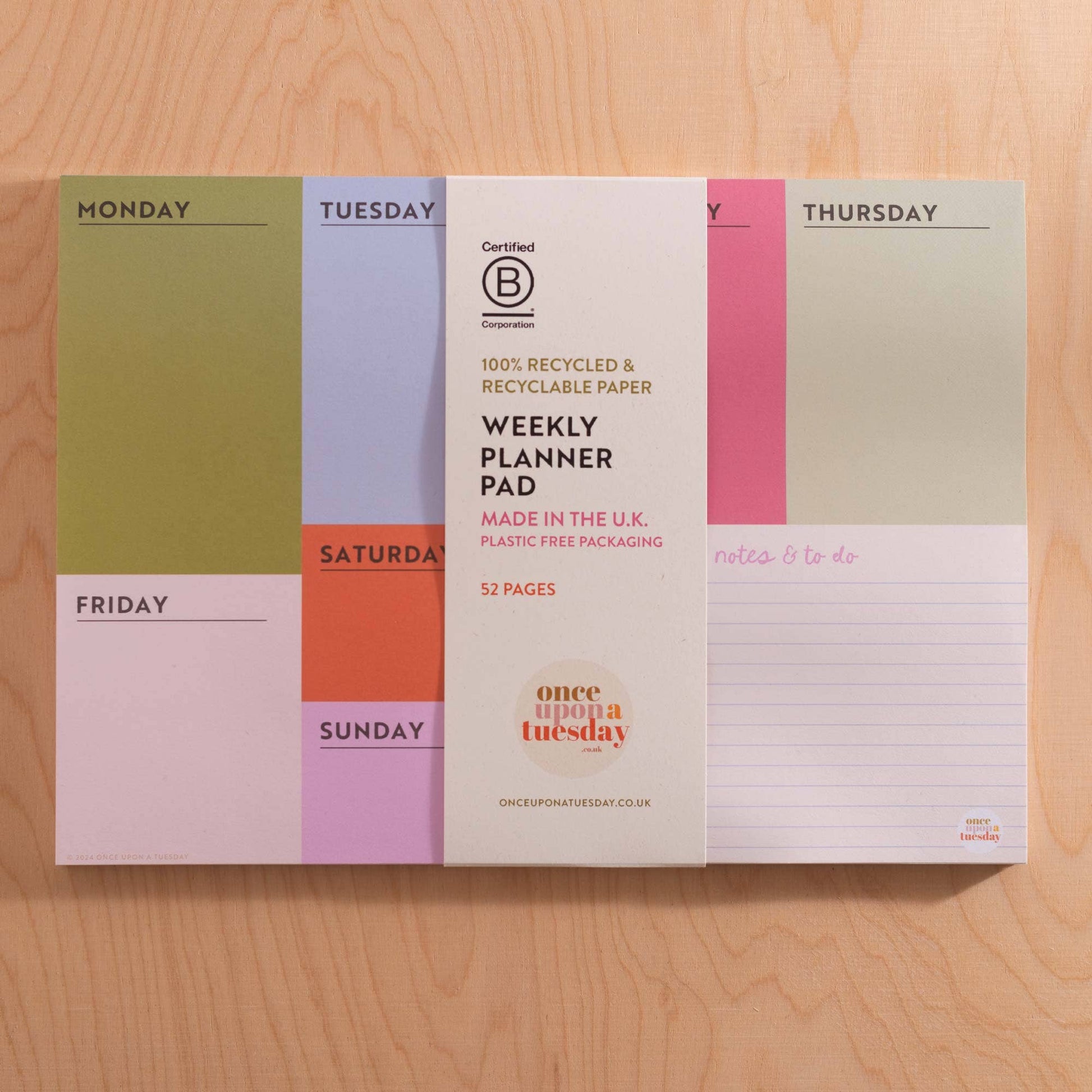 Bold, colour block A4 weekly planner pad with 52 tear off pages, with to-do list and notes section.