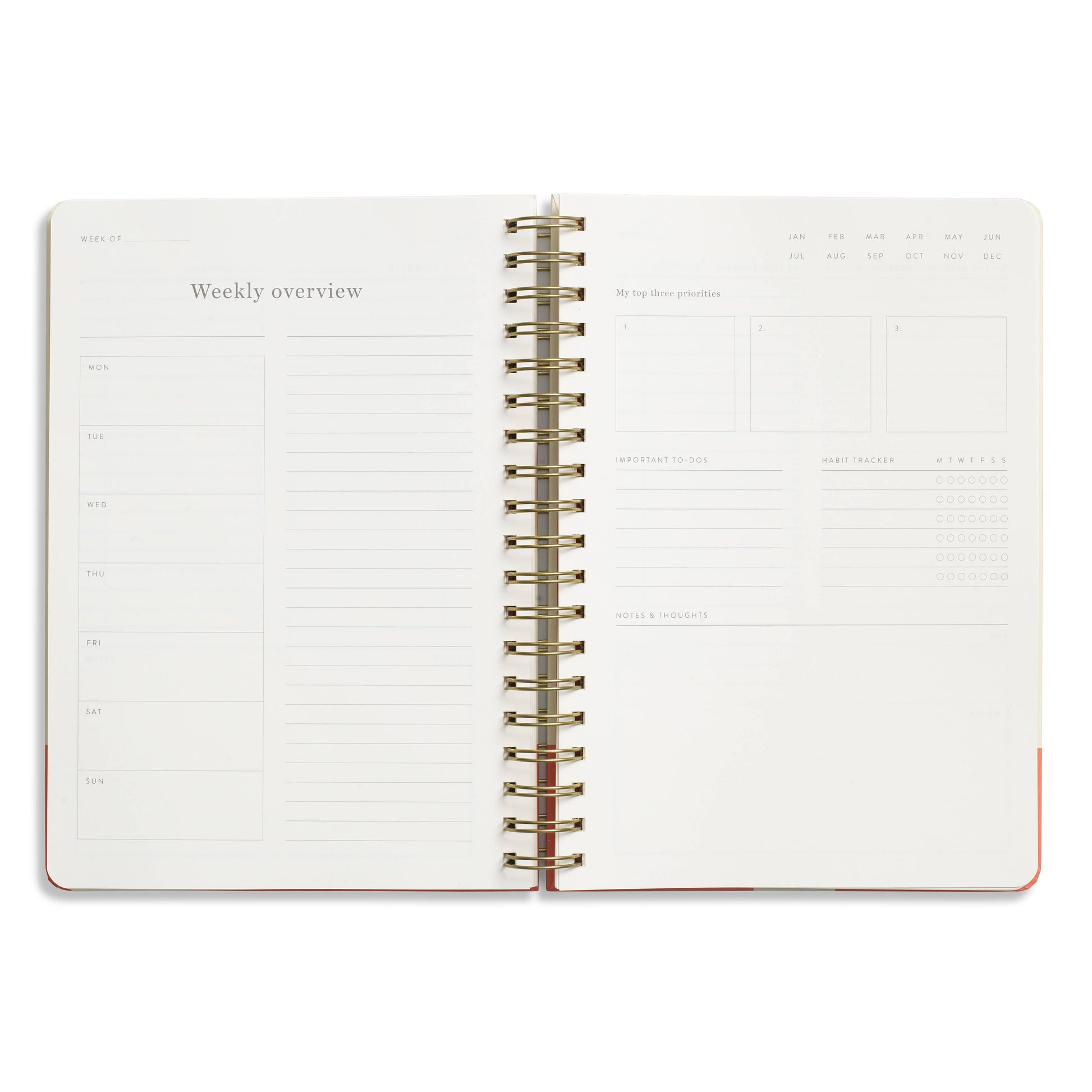 Offer your customers the ultimate tool for staying organized and achieving a healthy work-life balance with Papier's 16-week undated daily productivity planner. This planner provides ample space for planning daily and weekly tasks, managing to-dos, creating schedules, and tracking shopping lists. It also includes sections for goal setting, progress reviews, habit tracking, and personal reflection. With undated pages and a spiral binding for easy, lay-flat pages, your customers can start using it at any time, making it a flexible solution for year-round productivity.