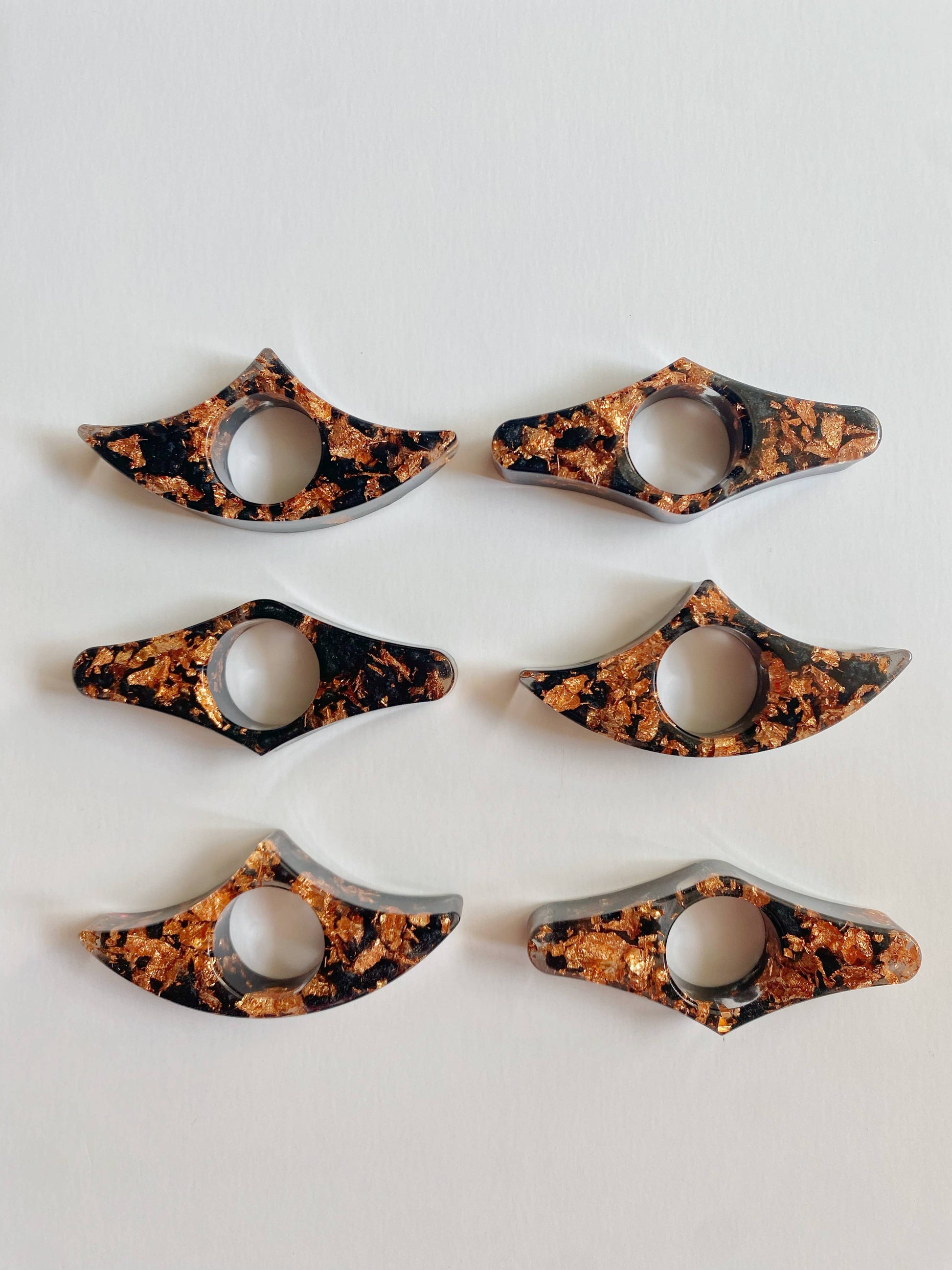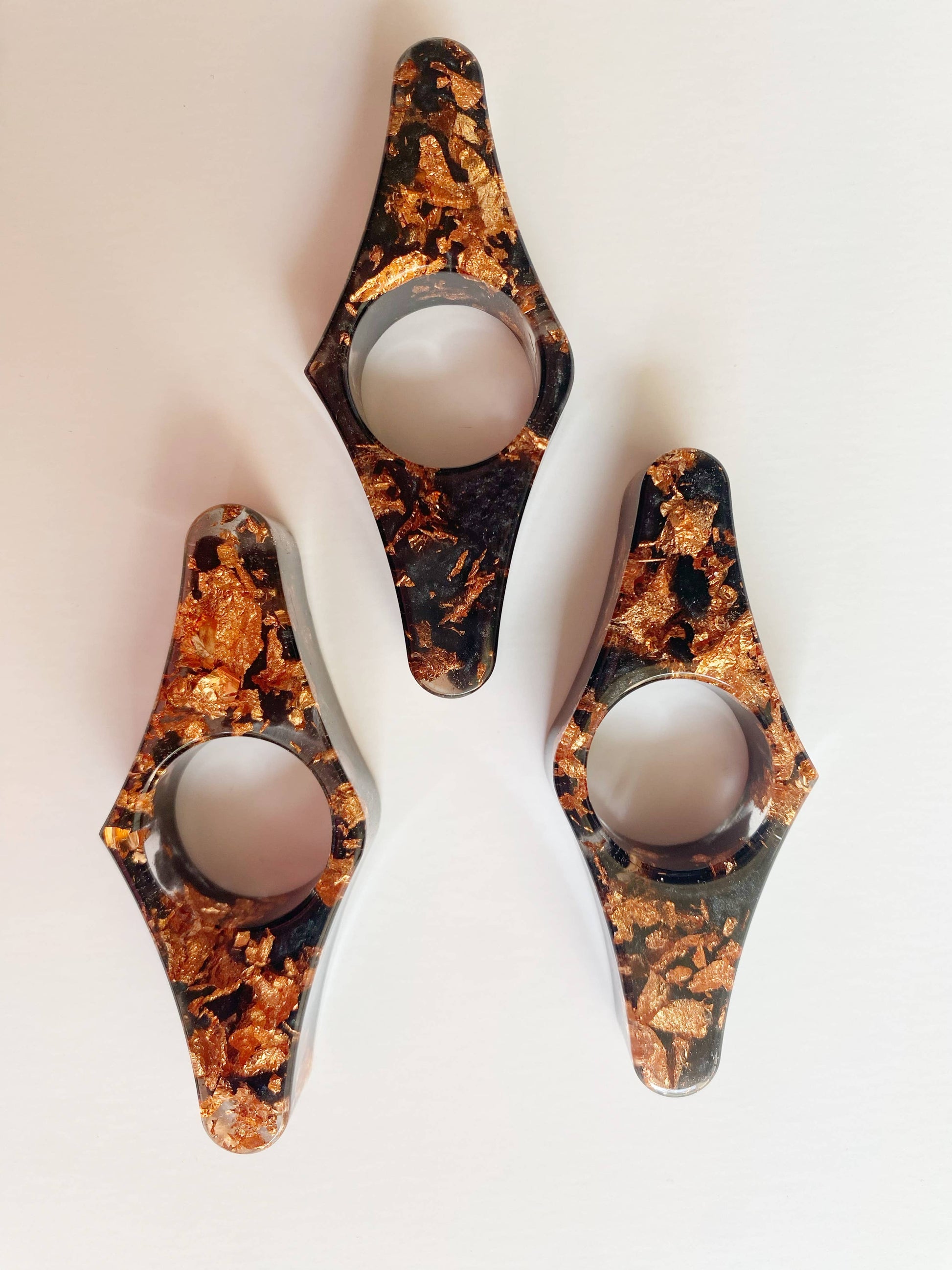These unique book holders are a shimmery black with copper foils encapsulated in heat resistant resin.