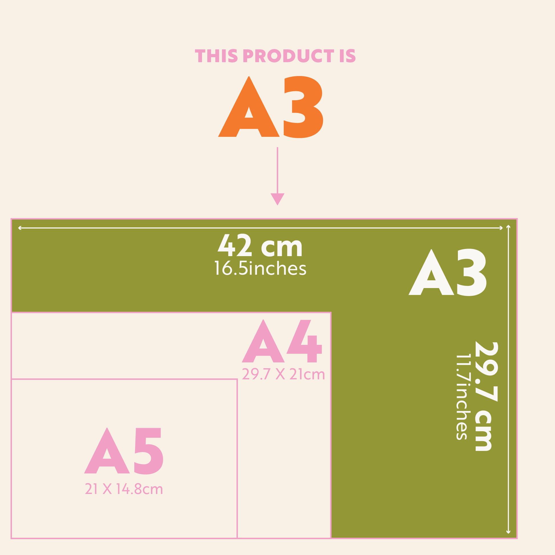 A3: 29.7 x 42 cm // 11.7 x 16.5 inches