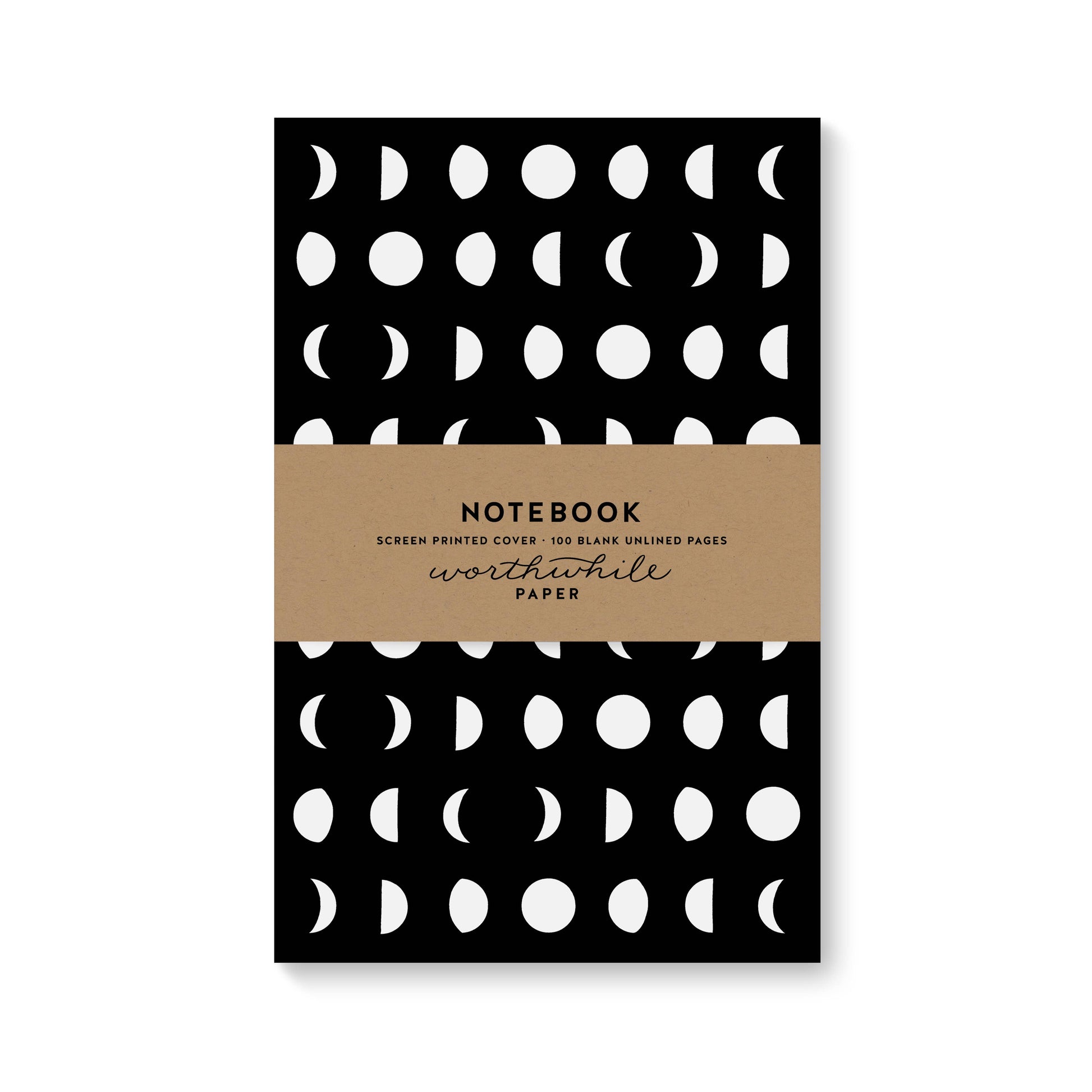 This notebook features a screen printed moon phases pattern, designed to remind you of your connection to the moon. Our notebooks are created to let your thoughts flow, while offering a delicious tactile writing experience.