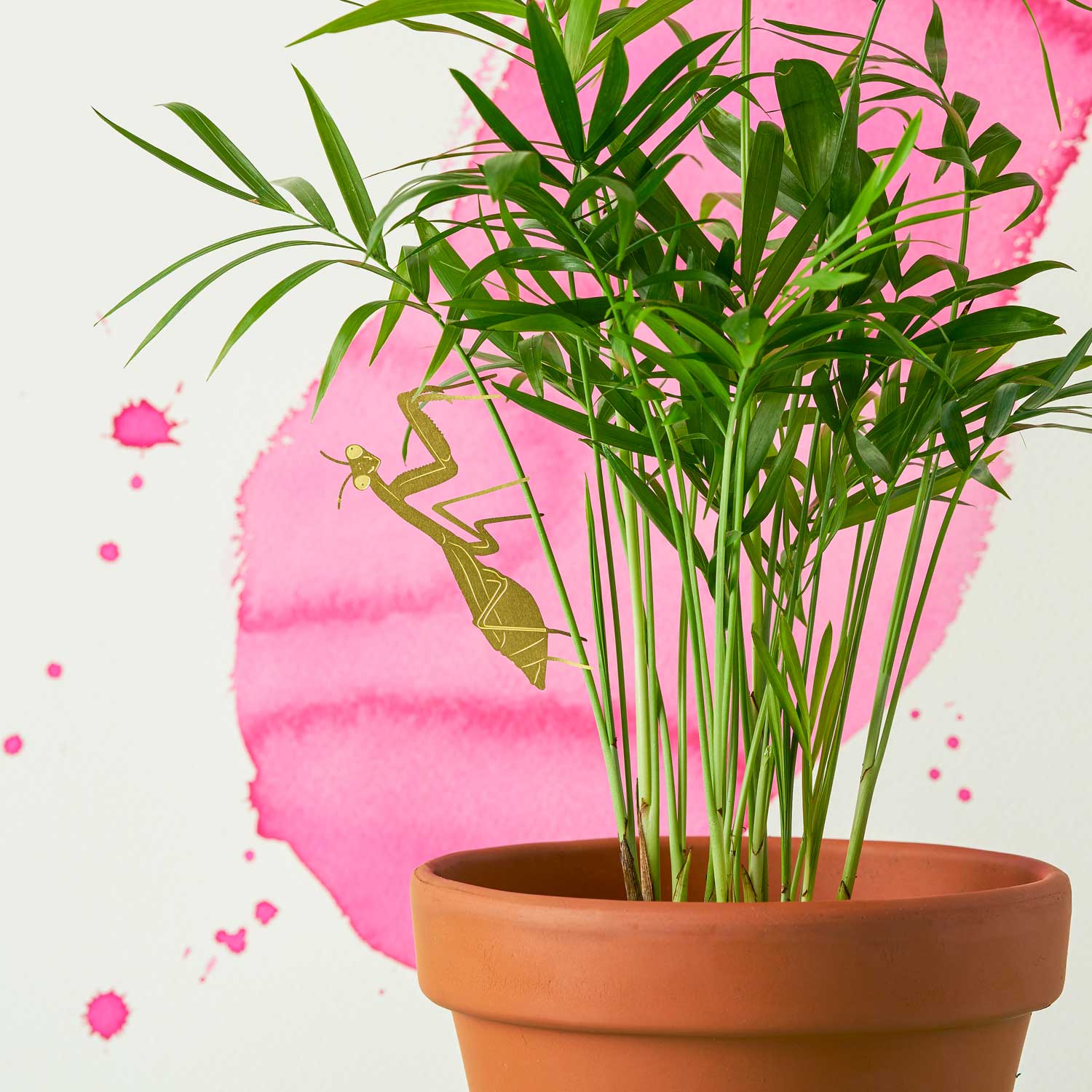 The Praying Mantis Plant Animal, a brass accessory that hugs stems, planters, or terrarium greenery. A super-cute plant accessory, they make a cute gift for gardeners, bug enthusiasts, and houseplant fans alike.